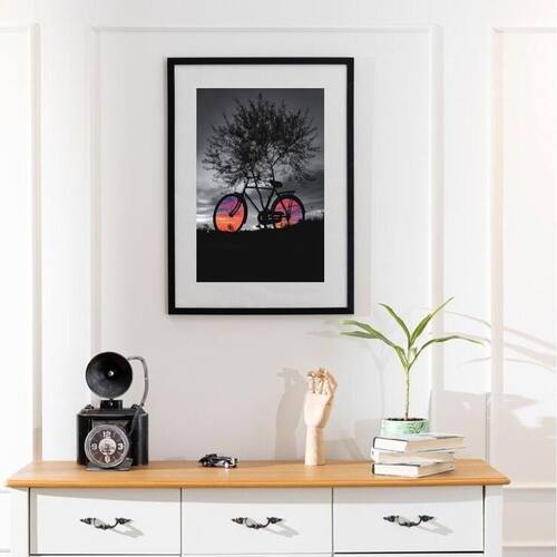 Quadro bicicleta paisagem - 60x48cm Cor: moldura branca Informações do produto tire todas as suas dúvidas no descritivo abaixo: decoração para quarto, sala, cozinha, escritório, área gourmet e muito mais. Chega de paredes vazias medidas - cada peça tem 60x48cm . Material do papel - papel fotográfico brilhante de altíssima resolução acabamento - todos os quadros são acompanhados de vidro para proteção da imagem. - moldura em madeira maciça na cor preta ou branca conforme produto escolhido e pendurador. - paspatur branco com 7cm de largura - os quadros são embalados de forma segura com plástico bolha com camada dupla de acordo com o tamanho dos quadros. - de 3 meses. Meu quadro chegou. Como posso fixá-lo Você precisa apenas de um martelo e um prego, pois os quadros já vão acompanhados de penduradores. Esta é a forma mais indicada. Como posso limpar meu quadro A limpeza é feita como um móvel comum da sua casa. Apenas um pano seco ou espanador são suficientes para tal Marca: Não Informado