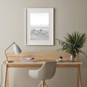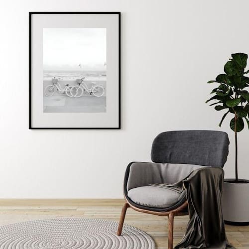 Quadro bicicletas brancas na praia - 60x48cm Moldura: madeira preta Informações do produto tire todas as suas dúvidas no descritivo abaixo: decoração para quarto, sala, cozinha, escritório, área gourmet e muito mais. Chega de paredes vazias medidas - cada peça tem 60x48cm . Material do papel - papel fotográfico brilhante de altíssima resolução acabamento - todos os quadros são acompanhados de vidro para proteção da imagem. - moldura em madeira maciça na cor preta ou branca conforme produto escolhido e pendurador. - paspatur branco com 7cm de largura - os quadros são embalados de forma segura com plástico bolha com camada dupla de acordo com o tamanho dos quadros. Garantia - garantia de 3 meses. Meu quadro chegou. Como posso fixá-lo Você precisa apenas de um martelo e um prego, pois os quadros já vão acompanhados de penduradores. Esta é a forma mais indicada. Como posso limpar meu quadro A limpeza é feita como um móvel comum da sua casa. Apenas um pano seco ou espanador são suficientes para tal