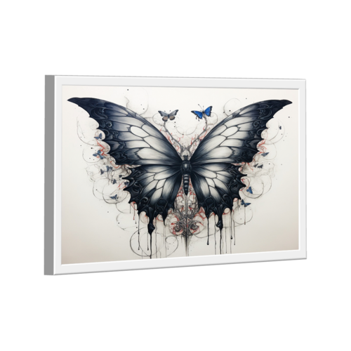 Quadro Black Butterfly -- BR ARTES Moldura Branca - Ultra Grande 150x100 -