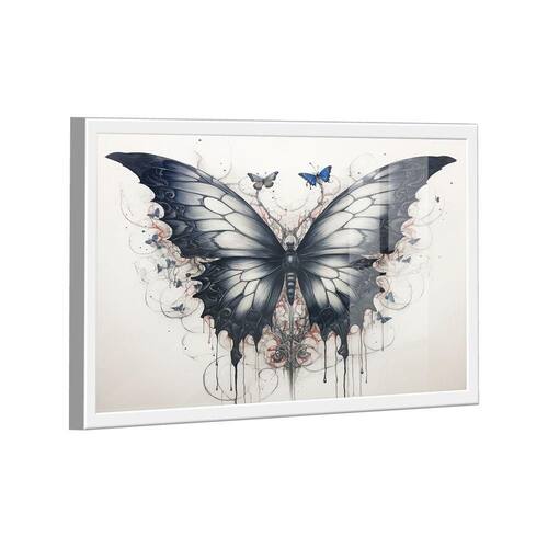 Quadro Black Butterfly -- BR ARTES Moldura Branca e Vidro - Gigante 180x105 -