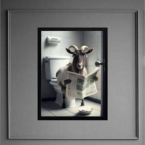 Quadro bode no banheiro lendo jornal 33x24cm - com vidro Moldura: madeira branca Informações do produto tire todas as suas dúvidas no descritivo abaixo: decoração para quarto, sala, cozinha, escritório, área gourmet e muito mais. Chega de paredes vazias medidas - cada peça tem 33x24cm a4 . Material do papel - papel fotográfico brilhante de altíssima resolução acabamento - todos os quadros são acompanhados de vidro para proteção da imagem. - moldura em madeira maciça na cor preta ou branca conforme produto escolhido e pendurador . - os quadros são embalados de forma segura com plástico bolha com camada dupla de acordo com o tamanho dos quadros. Garantia - garantia de 3 meses. Meu quadro chegou. Como posso fixá-lo Você precisa apenas de um martelo e um prego, pois os quadros já vão acompanhados de penduradores. Esta é a forma mais indicada. Como posso limpar meu quadro A limpeza é feita como um móvel comum da sua casa. Apenas um pano seco ou espanador são suficientes para tal