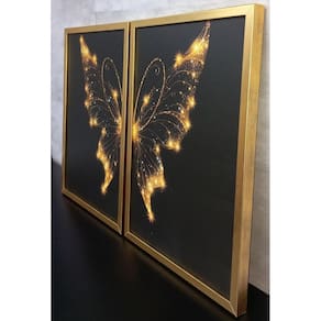 Apresentamos o nosso deslumbrante Quadro Borboleta Brilhante Canvas Moldura Dourada 60X40Cm, uma verdadeira obra de arte que irá adicionar um toque de elegância e sofisticação à sua decoração. Este conjunto possui dois quadros com dimensões generosas de 60x40cm cada, proporcionando uma presença marcante em qualquer espaço em que seja colocado.