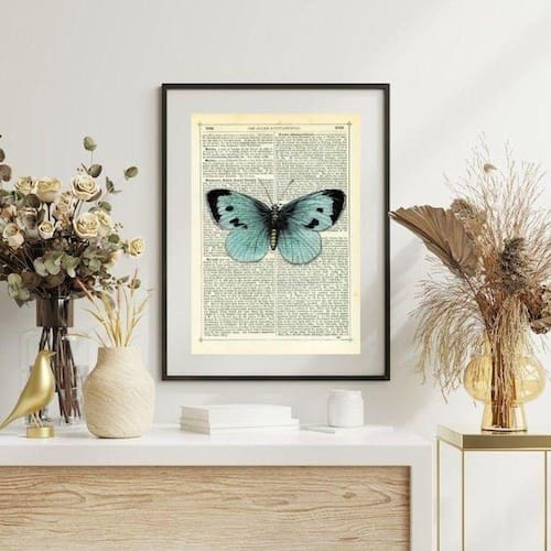 Quadro borboleta vintage azul - 60x48cm Moldura: madeira branca Informações do produto tire todas as suas dúvidas no descritivo abaixo: decoração para quarto, sala, cozinha, escritório, área gourmet e muito mais. Chega de paredes vazias medidas - cada peça tem 60x48cm . Material do papel - papel fotográfico brilhante de altíssima resolução acabamento - todos os quadros são acompanhados de vidro para proteção da imagem. - moldura em madeira maciça na cor preta ou branca conforme produto escolhido e pendurador. - paspatur branco com 7cm de largura - os quadros são embalados de forma segura com plástico bolha com camada dupla de acordo com o tamanho dos quadros. Garantia - garantia de 3 meses. Meu quadro chegou. Como posso fixá-lo Você precisa apenas de um martelo e um prego, pois os quadros já vão acompanhados de penduradores. Esta é a forma mais indicada. Como posso limpar meu quadro A limpeza é feita como um móvel comum da sua casa. Apenas um pano seco ou espanador são suficientes para tal