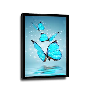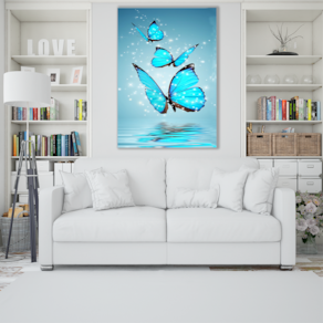 QUADRO BORBOLETAS AZUIS GG (150X100) C/ Moldura Preta -