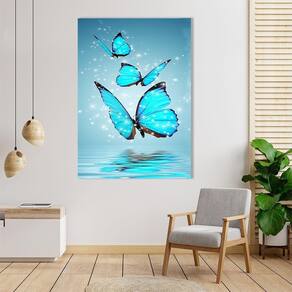 Quadro Borboletas Azuis QUADRO BORBOLETAS AZUIS G (118 x 78) S/ Moldura - -Qualidade Premium (padrão museu)