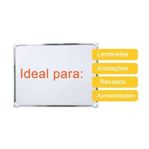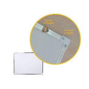 Os quadros brancos possuem superfície de secagem rápida além das bordas em alumínio e cantoneiras plásticas para proteção Acompanha suporte para pendurar na parede