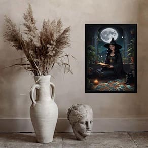 Quadro bruxa vidente - tarot 45x34cm Moldura: madeira preta Informações do produto tire todas as suas dúvidas no descritivo abaixo: decoração para quarto, sala, cozinha, escritório, área gourmet e muito mais. Chega de paredes vazias. Medidas - cada peça tem 45x34cm a3 . Material do papel - papel fotográfico brilhante de altíssima resolução acabamento - todos os quadros são acompanhados de uma película de acetato para proteção da imagem. - os quadros são embalados de forma segura com plástico bolha com camada dupla de acordo com o tamanho dos quadros. Garantia - garantia de 3 meses. Meu quadro chegou. Como posso fixá-lo Você precisa apenas de um martelo e um prego, pois os quadros já vão acompanhados de penduradores. Esta é a forma mais indicada. Caso prefira, você pode utilizar uma fita dupla face neste caso, sugerimos de alta qualidade para evitar que descole e seu quadro caia . Como posso limpar meu quadro A limpeza é feita como um móvel comum da sua casa. Apenas um pano seco ou espanador são suficientes para tal