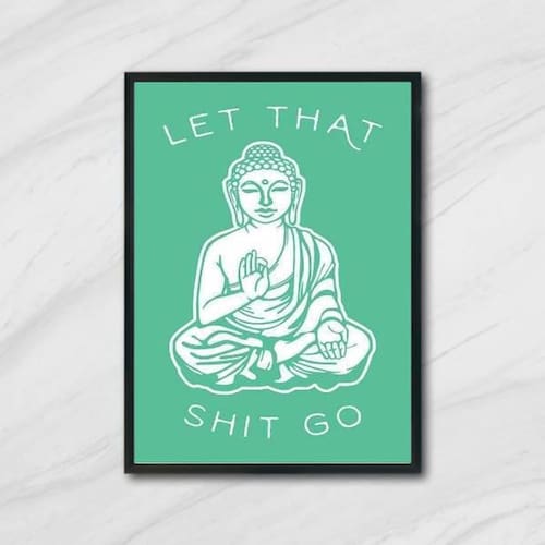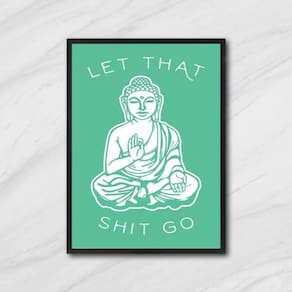 Quadro Buda Let That Shit Go Ii 24X18Cm Moldura: madeira branca