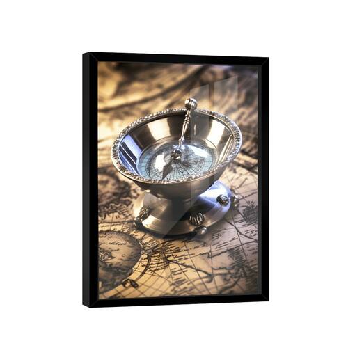 Quadro Bússola Decorativa -- BR ARTES Moldura Preta e Vidro - Gigante 180x105 -