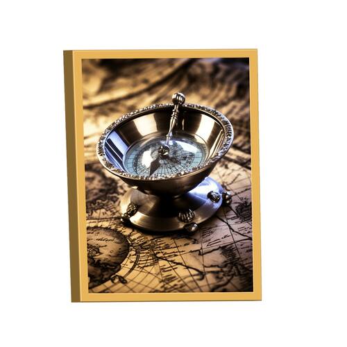 Quadro Bússola Decorativa -- BR ARTES Moldura Dourada - Gigante 180x105 -