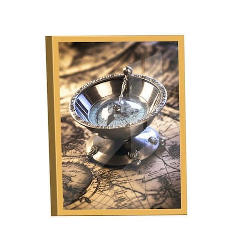 Quadro Bússola Decorativa -- BR ARTES Moldura Dourada e Vidro - Gigante 180x105 -