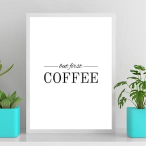 Quadro but first coffee - minimalista 24x18cm Cor: moldura preta Informações do produto tire todas as suas dúvidas no descritivo abaixo: decoração para quarto, sala, cozinha, escritório, área gourmet e muito mais. Chega de paredes vazias medidas - cada peça tem 24x18cm a5 . Material do papel - papel fotográfico brilhante de altíssima resolução acabamento - todos os quadros são acompanhados de uma película de acetato para proteção da imagem. - os quadros são embalados de forma segura com plástico bolha com camada dupla de acordo com o tamanho dos quadros. Garantia - garantia de 3 meses. Meu quadro chegou. Como posso fixá-lo Você precisa apenas de um martelo e um prego, pois os quadros já vão acompanhados de penduradores. Esta é a forma mais indicada. Caso prefira, você pode utilizar uma fita dupla face neste caso, sugerimos de alta qualidade para evitar que descole e seu quadro caia . Como posso limpar meu quadro A limpeza é feita como um móvel comum da sua casa. Apenas um pano seco ou espanador são suficientes para tal