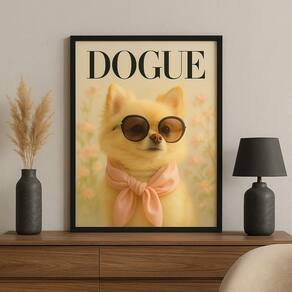 Quadro Cachorrinha Lulu Da Pomerânea Fashion 24x18cm - com vidro - Cor: Moldura branca