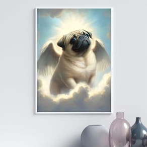 Quadro cachorrinho pug com asas 24x18cm - com vidro Moldura: madeira preta Informações do produto tire todas as suas dúvidas no descritivo abaixo: decoração para quarto, sala, cozinha, escritório, área gourmet e muito mais. Chega de paredes vazias medidas - cada peça tem 24x18cm a5 . Material do papel - papel fotográfico brilhante de altíssima resolução acabamento - todos os quadros são acompanhados de vidro para proteção da imagem. - moldura em madeira maciça na cor preta ou branca conforme produto escolhido e pendurador . - os quadros são embalados de forma segura com plástico bolha com camada dupla de acordo com o tamanho dos quadros. Garantia - garantia de 3 meses. Meu quadro chegou. Como posso fixá-lo Você precisa apenas de um martelo e um prego, pois os quadros já vão acompanhados de penduradores. Esta é a forma mais indicada. Como posso limpar meu quadro A limpeza é feita como um móvel comum da sua casa. Apenas um pano seco ou espanador são suficientes para tal