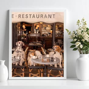 Quadro cães na cafeteria restaurante 33x24cm - com vidro Cor: moldura preta Informações do produto tire todas as suas dúvidas no descritivo abaixo: decoração para quarto, sala, cozinha, escritório, área gourmet e muito mais. Chega de paredes vazias medidas - cada peça tem 33x24cm a4 . Material do papel - papel fotográfico brilhante de altíssima resolução acabamento - todos os quadros são acompanhados de vidro para proteção da imagem. - moldura em madeira maciça na cor preta ou branca conforme produto escolhido e pendurador . - os quadros são embalados de forma segura com plástico bolha com camada dupla de acordo com o tamanho dos quadros. - de 3 meses. Meu quadro chegou. Como posso fixá-lo Você precisa apenas de um martelo e um prego, pois os quadros já vão acompanhados de penduradores. Esta é a forma mais indicada. Como posso limpar meu quadro A limpeza é feita como um móvel comum da sua casa. Apenas um pano seco ou espanador são suficientes para tal Marca: Não Informado