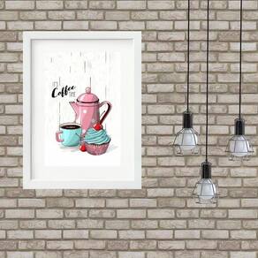 Quadro café com cupcake- 60x48cm Cor: moldura branca Informações do produto tire todas as suas dúvidas no descritivo abaixo: decoração para quarto, sala, cozinha, escritório, área gourmet e muito mais. Chega de paredes vazias medidas - cada peça tem 60x48cm . Material do papel - papel fotográfico brilhante de altíssima resolução acabamento - todos os quadros são acompanhados de vidro para proteção da imagem. - moldura em madeira maciça na cor preta ou branca conforme produto escolhido e pendurador. - paspatur branco com 7cm de largura - os quadros são embalados de forma segura com plástico bolha com camada dupla de acordo com o tamanho dos quadros. - de 3 meses. Meu quadro chegou. Como posso fixá-lo Você precisa apenas de um martelo e um prego, pois os quadros já vão acompanhados de penduradores. Esta é a forma mais indicada. Como posso limpar meu quadro A limpeza é feita como um móvel comum da sua casa. Apenas um pano seco ou espanador são suficientes para tal