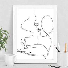 O Quadro Decorativo Minimalista Café One Line é perfeito para decorar diversos ambientes, como quarto, sala, cozinha, escritório, área gourmet e muito mais. Chega de paredes vazias! Com medidas de 33x24cm A4 , esse quadro vai adicionar um toque de elegância e estilo ao seu espaço.