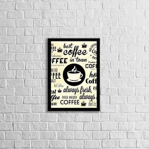 Quadro café palavras 24x18cm Moldura: madeira preta Informações do produto tire todas as suas dúvidas no descritivo abaixo: decoração para quarto, sala, cozinha, escritório, área gourmet e muito mais. Chega de paredes vazias medidas - cada peça tem 24x18cm a5 . Material do papel - papel fotográfico brilhante de altíssima resolução acabamento - todos os quadros são acompanhados de uma película de acetato para proteção da imagem. - moldura em madeira maciça na cor branca e pendurador móvel que pode ser retirado facilmente caso deseje fixar com fita dupla face. - os quadros são embalados de forma segura com plástico bolha com camada dupla de acordo com o tamanho dos quadros. - de 3 meses prazo de envio pedimos 24 horas úteis no máximo para enviar seu pedido após o envio, segue os prazos normais dos correios, cerca de 7 dias úteis exceto para norte e nordeste, que pode ser de até 14 dias úteis. Em diversas cidades, este prazo normalmente é reduzido, mas depende do prazo dos correios. Meu quadro chegou. Como posso fixá-lo Você precisa apenas de um martelo e um prego, pois os quadros já vão acompanhados de penduradores. Esta é a forma mais indicada. Caso prefira, você pode utilizar uma fita dupla face neste caso, sugerimos de alta qualidade para evitar que descole e seu quadro caia . Como posso limpar meu quadro A limpeza é feita como um móvel comum da sua casa. Apenas um pano seco ou espanador são suficientes para tal