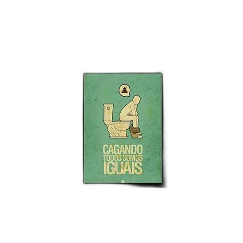 Quadro Cagando Todos Somos Iguais 24X18Cm Moldura: madeira branca