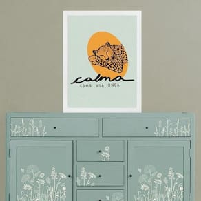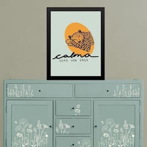 Quadro calma como uma onça 33x24cm Cor: moldura preta Informações do produto tire todas as suas dúvidas no descritivo abaixo: decoração para quarto, sala, cozinha, escritório, área gourmet e muito mais. Chega de paredes vazias medidas - cada peça tem 33x24cm a4 . Material do papel - papel fotográfico brilhante de altíssima resolução acabamento - todos os quadros são acompanhados de uma película de acetato para proteção da imagem. - os quadros são embalados de forma segura com plástico bolha com camada dupla de acordo com o tamanho dos quadros. Garantia - garantia de 3 meses. Meu quadro chegou. Como posso fixá-lo Você precisa apenas de um martelo e um prego, pois os quadros já vão acompanhados de penduradores. Esta é a forma mais indicada. Caso prefira, você pode utilizar uma fita dupla face neste caso, sugerimos de alta qualidade para evitar que descole e seu quadro caia . Como posso limpar meu quadro A limpeza é feita como um móvel comum da sua casa. Apenas um pano seco ou espanador são suficientes para tal