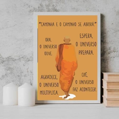Quadro caminha e o caminho se abrirá 24x18cm Moldura: madeira branca