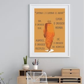 Quadro caminha e o caminho se abrirá - 60x48cm Moldura: madeira preta Informações do produto tire todas as suas dúvidas no descritivo abaixo: decoração para quarto, sala, cozinha, escritório, área gourmet e muito mais. Chega de paredes vazias medidas - cada peça tem 60x48cm . Material do papel - papel fotográfico brilhante de altíssima resolução acabamento - todos os quadros são acompanhados de vidro para proteção da imagem. - moldura em madeira maciça na cor preta ou branca conforme produto escolhido e pendurador. - paspatur branco com 7cm de largura - os quadros são embalados de forma segura com plástico bolha com camada dupla de acordo com o tamanho dos quadros. Garantia - garantia de 3 meses. Meu quadro chegou. Como posso fixá-lo Você precisa apenas de um martelo e um prego, pois os quadros já vão acompanhados de penduradores. Esta é a forma mais indicada. Como posso limpar meu quadro A limpeza é feita como um móvel comum da sua casa. Apenas um pano seco ou espanador são suficientes para tal Ean: 7890255523248