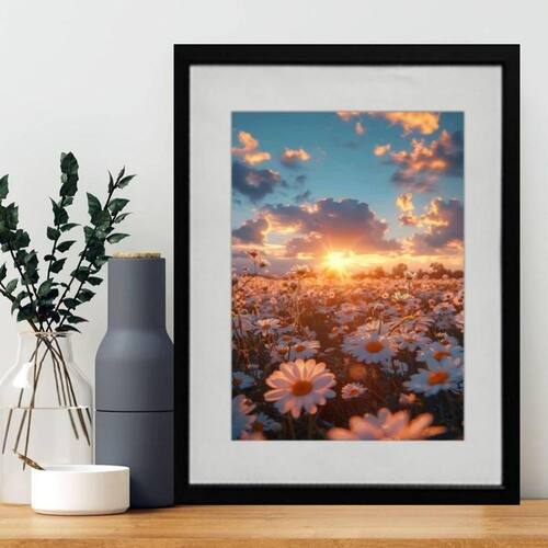 Quadro campo de margaridas 60x48cm Cor: moldura preta Informações do produto tire todas as suas dúvidas no descritivo abaixo: decoração para quarto, sala, cozinha, escritório, área gourmet e muito mais. Chega de paredes vazias medidas - cada peça tem 60x48cm . Material do papel - papel fotográfico brilhante de altíssima resolução acabamento - todos os quadros são acompanhados de vidro para proteção da imagem. - moldura em madeira maciça na cor preta ou branca conforme produto escolhido e pendurador. - paspatur branco com 7cm de largura - os quadros são embalados de forma segura com plástico bolha com camada dupla de acordo com o tamanho dos quadros. Garantia - garantia de 3 meses. Meu quadro chegou. Como posso fixá-lo Você precisa apenas de um martelo e um prego, pois os quadros já vão acompanhados de penduradores. Esta é a forma mais indicada. Como posso limpar meu quadro A limpeza é feita como um móvel comum da sua casa. Apenas um pano seco ou espanador são suficientes para tal