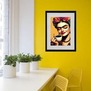 Quadro cantinho do café frida - 60x48cm Moldura: madeira preta Informações do produto tire todas as suas dúvidas no descritivo abaixo: decoração para quarto, sala, cozinha, escritório, área gourmet e muito mais. Chega de paredes vazias medidas - cada peça tem 60x48cm . Material do papel - papel fotográfico brilhante de altíssima resolução acabamento - todos os quadros são acompanhados de vidro para proteção da imagem. - moldura em madeira maciça na cor preta ou branca conforme produto escolhido e pendurador. - paspatur branco com 7cm de largura - os quadros são embalados de forma segura com plástico bolha com camada dupla de acordo com o tamanho dos quadros. Garantia - garantia de 3 meses. Meu quadro chegou. Como posso fixá-lo Você precisa apenas de um martelo e um prego, pois os quadros já vão acompanhados de penduradores. Esta é a forma mais indicada. Como posso limpar meu quadro A limpeza é feita como um móvel comum da sua casa. Apenas um pano seco ou espanador são suficientes para tal