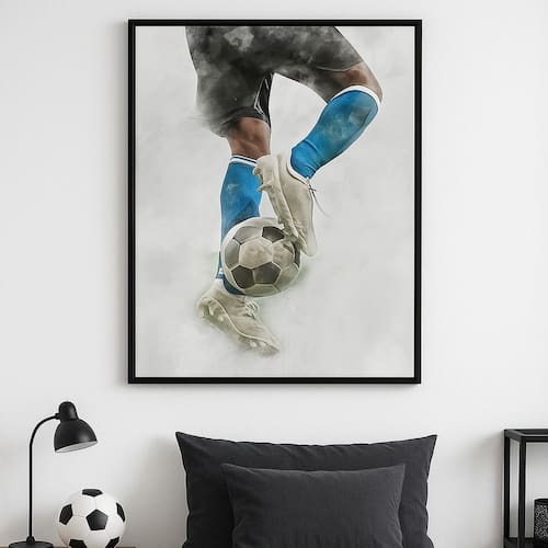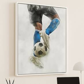 Quadro Canvas Aquarela Futebol Drible 60x40cm Mold Branca