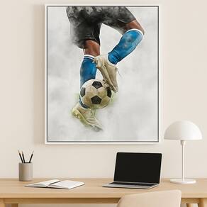 Quadro Canvas Aquarela Futebol Drible 70x50cm Mold Preta