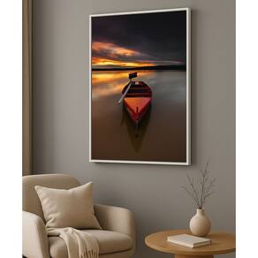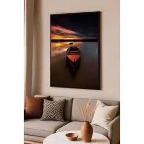 Quadro Canvas Barco Vermelho Ao Por Sol 60x40cm Mold Preta