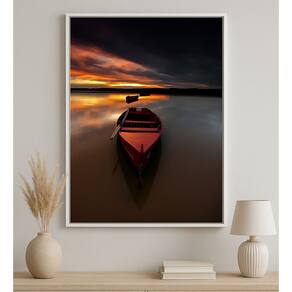 Quadro Canvas Barco Vermelho Ao Por Sol 70x50cm Mold Branca