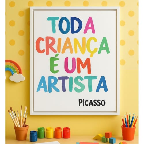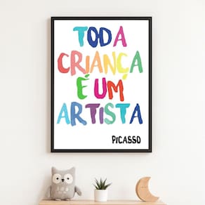 Quadro Canvas Criança Artista Picasso 60x40cm Mold Preta