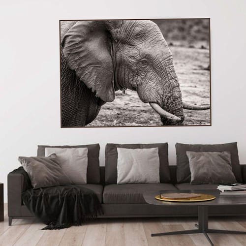 Quadro Canvas Decorativo Para Sala Elefante 60x90Nossa impressão em HD a base de solvente garante que as cores sejam brilhantes e não desbotem com o tempo. Impressão fotográfica de alta qualidade em tecido Canvas de algodão, as laterais da tela são recobertas com a própria impressão, sem a necessidade de moldura. A armação em madeira de pinus, vazada, mede 2cm de profundidade.DIMENSÇÕESAltura: 60cmLargura: 90cmProfundidade: 2cmCARACTERÍSTICA DO PRODUTOTELA:- Impressa em tecido Canvas 100% algodão, esticado e grampeado em armação de madeira.- A qualidade do tecido canvas é o mesmo utilizado em obras de arte com impressão de alta resolução a base de solvente.LIMPEZA:- Utilizar espanador ou pano seco e macio. Poderá usar pano ligeiramente úmido, porém sem conter álcool ou produtos químicos.INSTALAÇÃO:- Pendure com prego ou bucha com parafuso.EVITAR- Não deixar exposto a umidade, raios de sol, para garantir maior durabilidade.ATENÇÃOPODE OCORRER UMA LEVE DIFERENÇA NA TONALIDADE DAS CORES IMPRESSAS NO PRODUTO, EM COMPARAÇÃO, AS QUE SÃO VISTAS NA TELA DOS MONITORES OU SMARTPHONES. Marca: LUGGUI ART. FOTOG