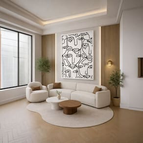 Quadro Canvas Line Art Rostos P&B 40x30cm Mold Branca