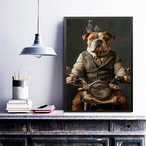 Quadro Cão Boxer Motociclista 33X24Cm - Com Vidro
