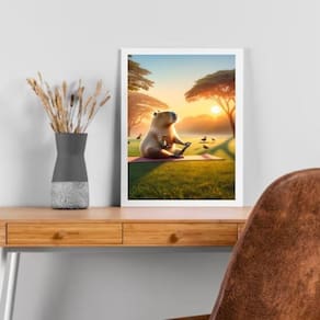 Quadro capivara fazendo yoga 33x24cm Cor: moldura preta Informações do produto tire todas as suas dúvidas no descritivo abaixo: decoração para quarto, sala, cozinha, escritório, área gourmet e muito mais. Chega de paredes vazias medidas - cada peça tem 33x24cm a4 . Material do papel - papel fotográfico brilhante de altíssima resolução acabamento - todos os quadros são acompanhados de uma película de acetato para proteção da imagem. - os quadros são embalados de forma segura com plástico bolha com camada dupla de acordo com o tamanho dos quadros. Garantia - garantia de 3 meses. Meu quadro chegou. Como posso fixá-lo Você precisa apenas de um martelo e um prego, pois os quadros já vão acompanhados de penduradores. Esta é a forma mais indicada. Caso prefira, você pode utilizar uma fita dupla face neste caso, sugerimos de alta qualidade para evitar que descole e seu quadro caia . Como posso limpar meu quadro A limpeza é feita como um móvel comum da sua casa. Apenas um pano seco ou espanador são suficientes para tal