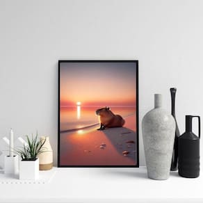 Quadro capivara na praia - por do sol 24x18cm Cor: moldura preta Informações do produto tire todas as suas dúvidas no descritivo abaixo: decoração para quarto, sala, cozinha, escritório, área gourmet e muito mais. Chega de paredes vazias medidas - cada peça tem 24x18cm a5 . Material do papel - papel fotográfico brilhante de altíssima resolução acabamento - todos os quadros são acompanhados de uma película de acetato para proteção da imagem. - os quadros são embalados de forma segura com plástico bolha com camada dupla de acordo com o tamanho dos quadros. Garantia - garantia de 3 meses. Meu quadro chegou. Como posso fixá-lo Você precisa apenas de um martelo e um prego, pois os quadros já vão acompanhados de penduradores. Esta é a forma mais indicada. Caso prefira, você pode utilizar uma fita dupla face neste caso, sugerimos de alta qualidade para evitar que descole e seu quadro caia . Como posso limpar meu quadro A limpeza é feita como um móvel comum da sua casa. Apenas um pano seco ou espanador são suficientes para tal