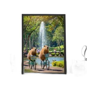 Quadro capivaras andando de bicicleta 24x18cm Moldura: madeira preta Informações do produto tire todas as suas dúvidas no descritivo abaixo: decoração para quarto, sala, cozinha, escritório, área gourmet e muito mais. Chega de paredes vazias medidas - cada peça tem 24x18cm a5 . Material do papel - papel fotográfico brilhante de altíssima resolução acabamento - todos os quadros são acompanhados de uma película de acetato para proteção da imagem. - os quadros são embalados de forma segura com plástico bolha com camada dupla de acordo com o tamanho dos quadros. - de 3 meses. Meu quadro chegou. Como posso fixá-lo Você precisa apenas de um martelo e um prego, pois os quadros já vão acompanhados de penduradores. Esta é a forma mais indicada. Caso prefira, você pode utilizar uma fita dupla face neste caso, sugerimos de alta qualidade para evitar que descole e seu quadro caia . Como posso limpar meu quadro A limpeza é feita como um móvel comum da sua casa. Apenas um pano seco ou espanador são suficientes para tal Marca: Não Informado
