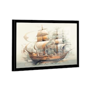 Quadro Caravela Aquarela -- BR ARTES Moldura Preta e Vidro - Pequeno 60x40 -