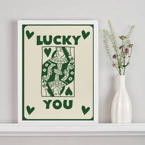 Quadro carta baralho - lucky you 24x18cm Moldura: madeira branca Informações do produto tire todas as suas dúvidas no descritivo abaixo: decoração para quarto, sala, cozinha, escritório, área gourmet e muito mais. Chega de paredes vazias medidas - cada peça tem 24x18cm a5 . Material do papel - papel fotográfico brilhante de altíssima resolução acabamento - todos os quadros são acompanhados de uma película de acetato para proteção da imagem. - os quadros são embalados de forma segura com plástico bolha com camada dupla de acordo com o tamanho dos quadros. - de 3 meses. Meu quadro chegou. Como posso fixá-lo Você precisa apenas de um martelo e um prego, pois os quadros já vão acompanhados de penduradores. Esta é a forma mais indicada. Caso prefira, você pode utilizar uma fita dupla face neste caso, sugerimos de alta qualidade para evitar que descole e seu quadro caia . Como posso limpar meu quadro A limpeza é feita como um móvel comum da sua casa. Apenas um pano seco ou espanador são suficientes para tal Marca: Não Informado Ean: 7895598110803