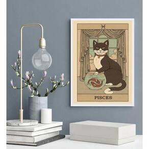 Quadro carta tarot gato signo peixes 45x34cm Moldura: madeira branca Informações do produto tire todas as suas dúvidas no descritivo abaixo: decoração para quarto, sala, cozinha, escritório, área gourmet e muito mais. Chega de paredes vazias. Medidas - cada peça tem 45x34cm a3 . Material do papel - papel fotográfico brilhante de altíssima resolução acabamento - todos os quadros são acompanhados de uma película de acetato para proteção da imagem. - os quadros são embalados de forma segura com plástico bolha com camada dupla de acordo com o tamanho dos quadros. Garantia - garantia de 3 meses. Meu quadro chegou. Como posso fixá-lo Você precisa apenas de um martelo e um prego, pois os quadros já vão acompanhados de penduradores. Esta é a forma mais indicada. Caso prefira, você pode utilizar uma fita dupla face neste caso, sugerimos de alta qualidade para evitar que descole e seu quadro caia . Como posso limpar meu quadro A limpeza é feita como um móvel comum da sua casa. Apenas um pano seco ou espanador são suficientes para tal Ean: 7895776839403
