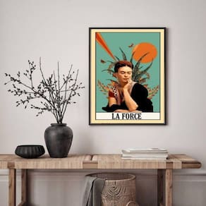 Quadro carta tarot la force - frida 33x24cm - com vidro Moldura: madeira branca Informações do produto tire todas as suas dúvidas no descritivo abaixo: decoração para quarto, sala, cozinha, escritório, área gourmet e muito mais. Chega de paredes vazias medidas - cada peça tem 33x24cm a4 . Material do papel - papel fotográfico brilhante de altíssima resolução acabamento - todos os quadros são acompanhados de vidro para proteção da imagem. - moldura em madeira maciça na cor preta ou branca conforme produto escolhido e pendurador . - os quadros são embalados de forma segura com plástico bolha com camada dupla de acordo com o tamanho dos quadros. Garantia - garantia de 3 meses. Meu quadro chegou. Como posso fixá-lo Você precisa apenas de um martelo e um prego, pois os quadros já vão acompanhados de penduradores. Esta é a forma mais indicada. Como posso limpar meu quadro A limpeza é feita como um móvel comum da sua casa. Apenas um pano seco ou espanador são suficientes para tal