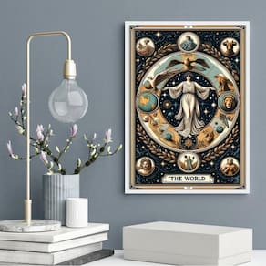 Quadro carta tarot vintage - the world 45x34cm Cor: moldura preta Informações do produto tire todas as suas dúvidas no descritivo abaixo: decoração para quarto, sala, cozinha, escritório, área gourmet e muito mais. Chega de paredes vazias. Medidas - cada peça tem 45x34cm a3 . Material do papel - papel fotográfico brilhante de altíssima resolução acabamento - todos os quadros são acompanhados de uma película de acetato para proteção da imagem. - os quadros são embalados de forma segura com plástico bolha com camada dupla de acordo com o tamanho dos quadros. Garantia - garantia de 3 meses. Meu quadro chegou. Como posso fixá-lo Você precisa apenas de um martelo e um prego, pois os quadros já vão acompanhados de penduradores. Esta é a forma mais indicada. Caso prefira, você pode utilizar uma fita dupla face neste caso, sugerimos de alta qualidade para evitar que descole e seu quadro caia . Como posso limpar meu quadro A limpeza é feita como um móvel comum da sua casa. Apenas um pano seco ou espanador são suficientes para tal