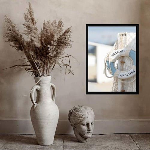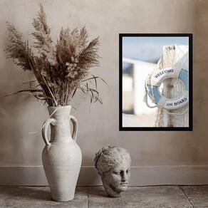 Quadro casa de praia - welcome on board 24x18cm Moldura: madeira preta Informações do produto tire todas as suas dúvidas no descritivo abaixo: decoração para quarto, sala, cozinha, escritório, área gourmet e muito mais. Chega de paredes vazias medidas - cada peça tem 24x18cm a5 . Material do papel - papel fotográfico brilhante de altíssima resolução acabamento - todos os quadros são acompanhados de uma película de acetato para proteção da imagem. - os quadros são embalados de forma segura com plástico bolha com camada dupla de acordo com o tamanho dos quadros. Garantia - garantia de 3 meses. Meu quadro chegou. Como posso fixá-lo Você precisa apenas de um martelo e um prego, pois os quadros já vão acompanhados de penduradores. Esta é a forma mais indicada. Caso prefira, você pode utilizar uma fita dupla face neste caso, sugerimos de alta qualidade para evitar que descole e seu quadro caia . Como posso limpar meu quadro A limpeza é feita como um móvel comum da sua casa. Apenas um pano seco ou espanador são suficientes para tal