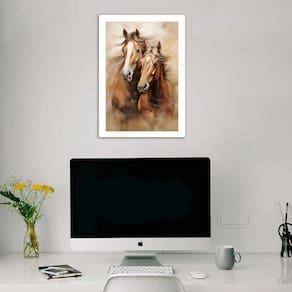 Quadro casal de cavalos 24x18cm Cor: moldura branca Informações do produto tire todas as suas dúvidas no descritivo abaixo: decoração para quarto, sala, cozinha, escritório, área gourmet e muito mais. Chega de paredes vazias medidas - cada peça tem 24x18cm a5 . Material do papel - papel fotográfico brilhante de altíssima resolução acabamento - todos os quadros são acompanhados de uma película de acetato para proteção da imagem. - os quadros são embalados de forma segura com plástico bolha com camada dupla de acordo com o tamanho dos quadros. Garantia - garantia de 3 meses. Meu quadro chegou. Como posso fixá-lo Você precisa apenas de um martelo e um prego, pois os quadros já vão acompanhados de penduradores. Esta é a forma mais indicada. Caso prefira, você pode utilizar uma fita dupla face neste caso, sugerimos de alta qualidade para evitar que descole e seu quadro caia . Como posso limpar meu quadro A limpeza é feita como um móvel comum da sua casa. Apenas um pano seco ou espanador são suficientes para tal