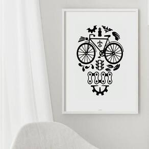 Quadro caveira bicicleta - 60x48cm Moldura: madeira branca Informações do produto tire todas as suas dúvidas no descritivo abaixo: decoração para quarto, sala, cozinha, escritório, área gourmet e muito mais. Chega de paredes vazias medidas - cada peça tem 60x48cm . Material do papel - papel fotográfico brilhante de altíssima resolução acabamento - todos os quadros são acompanhados de vidro para proteção da imagem. - moldura em madeira maciça na cor preta ou branca conforme produto escolhido e pendurador. - paspatur branco com 7cm de largura - os quadros são embalados de forma segura com plástico bolha com camada dupla de acordo com o tamanho dos quadros. Garantia - garantia de 3 meses. Meu quadro chegou. Como posso fixá-lo Você precisa apenas de um martelo e um prego, pois os quadros já vão acompanhados de penduradores. Esta é a forma mais indicada. Como posso limpar meu quadro A limpeza é feita como um móvel comum da sua casa. Apenas um pano seco ou espanador são suficientes para tal