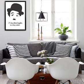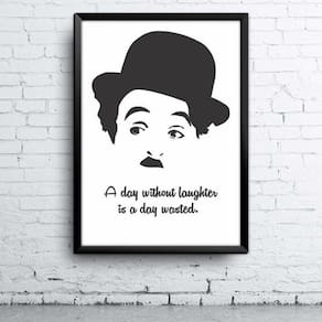 Quadro Chaplin A4 Quadro com moldura em madeira. Fita dupla face para pendurar sem sujeira. Este produto é a opção ideal para quem deseja comodidade na hora de decorar. informações do produto Moldura com 2cm de largura em madeira pinus com excelente acabamento fosco e arte impressa em vinil fosco alta durabilidade. Acompanha fita dupla face já instalada para pendurar a moldura e embalagem protetora com cantoneiras que evitam danos durante o transporte. Opções de formatos A4: gravuras no tamanho 21x30cm - medida externa: 24x33cm Prazo de produção: 03 a 05 dias úteis após aprovação do pagamento. As cores podem ter pequenas variações em relação a imagem do seu monitor. As medidas podem sofrer mínimas variações. Marca: Sdesign