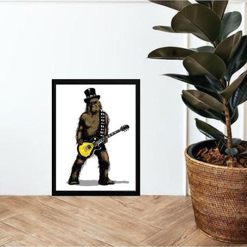 Quadro chewbacca rock 33x24cm Moldura: madeira preta Informações do produto tire todas as suas dúvidas no descritivo abaixo: decoração para quarto, sala, cozinha, escritório, área gourmet e muito mais. Chega de paredes vazias medidas - cada peça tem 33x24cm a4 . Material do papel - papel fotográfico brilhante de altíssima resolução acabamento - todos os quadros são acompanhados de uma película de acetato para proteção da imagem. - moldura em madeira maciça na cor preta ou branca conforme produto escolhido e pendurador móvel que pode ser retirado facilmente caso deseje fixar com fita dupla face. - os quadros são embalados de forma segura com plástico bolha com camada dupla de acordo com o tamanho dos quadros. Garantia - garantia de 3 meses. Meu quadro chegou. Como posso fixá-lo Você precisa apenas de um martelo e um prego, pois os quadros já vão acompanhados de penduradores. Esta é a forma mais indicada. Caso prefira, você pode utilizar uma fita dupla face neste caso, sugerimos de alta qualidade para evitar que descole e seu quadro caia . Como posso limpar meu quadro A limpeza é feita como um móvel comum da sua casa. Apenas um pano seco ou espanador são suficientes para tal