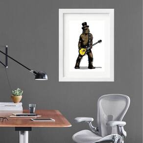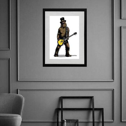 Quadro chewbacca rock - 60x48cm Moldura: madeira branca Informações do produto tire todas as suas dúvidas no descritivo abaixo: decoração para quarto, sala, cozinha, escritório, área gourmet e muito mais. Chega de paredes vazias medidas - cada peça tem 60x48cm . Material do papel - papel fotográfico brilhante de altíssima resolução acabamento - todos os quadros são acompanhados de vidro para proteção da imagem. - moldura em madeira maciça na cor preta ou branca conforme produto escolhido e pendurador. - paspatur branco com 7cm de largura - os quadros são embalados de forma segura com plástico bolha com camada dupla de acordo com o tamanho dos quadros. Garantia - garantia de 3 meses. Meu quadro chegou. Como posso fixá-lo Você precisa apenas de um martelo e um prego, pois os quadros já vão acompanhados de penduradores. Esta é a forma mais indicada. Como posso limpar meu quadro A limpeza é feita como um móvel comum da sua casa. Apenas um pano seco ou espanador são suficientes para tal